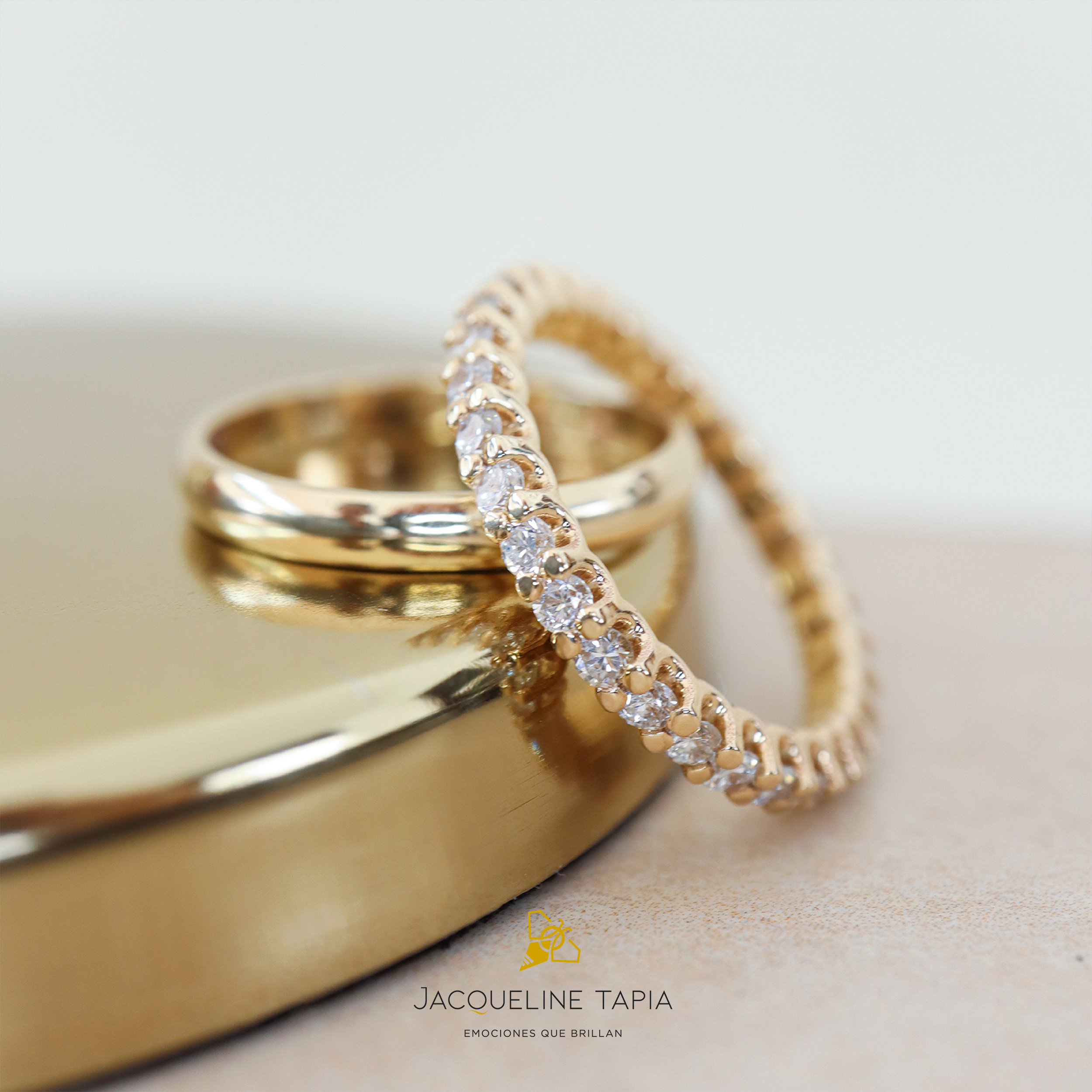 Argolla Media Caña 4mm en Oro 14K Churumbela Eternity en Oro 14K