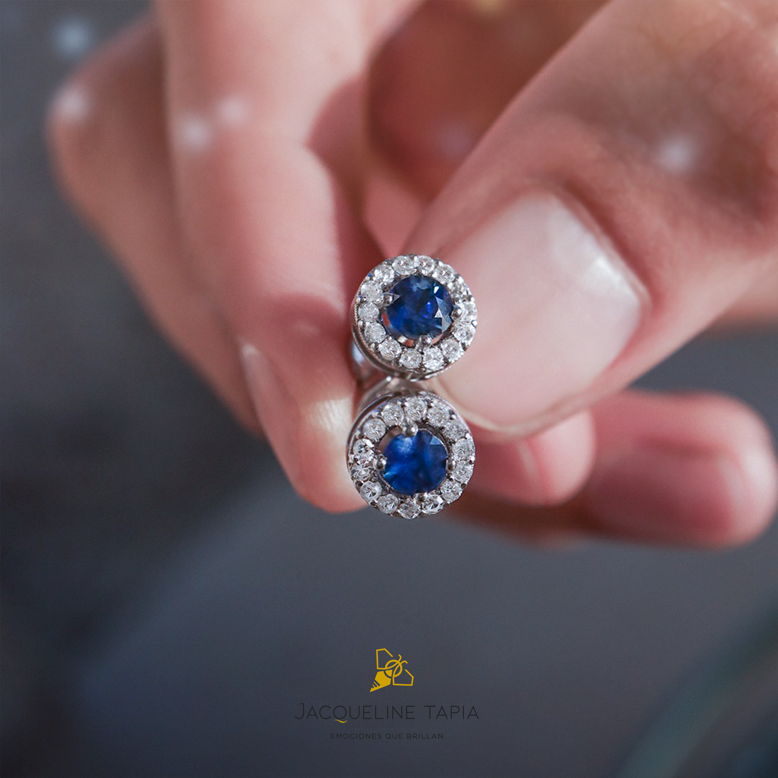 Broquel Zafiro y halo de Diamantes en Oro Blanco 14K