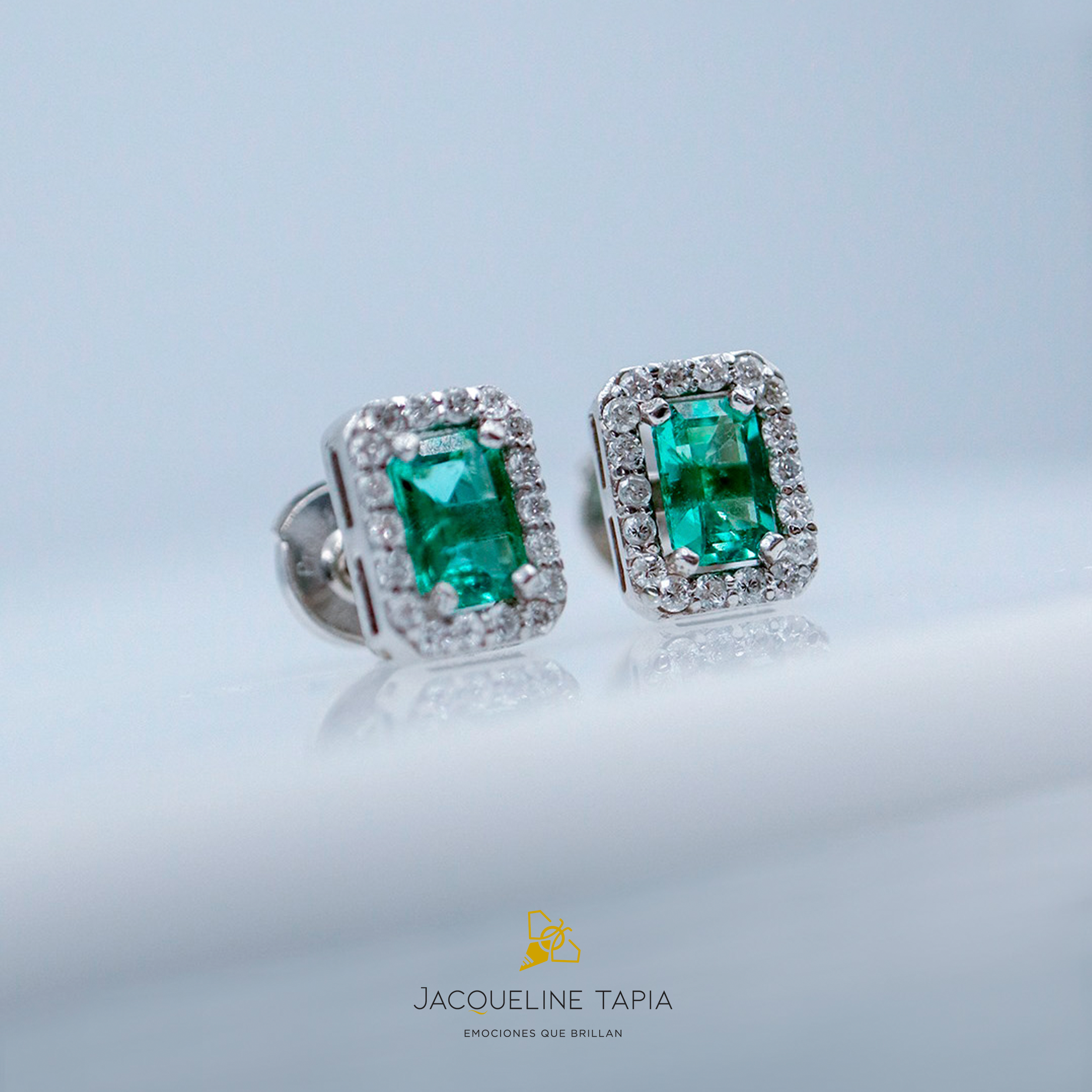 Broquel de Esmeralda con halo de Diamantes en Oro 14K