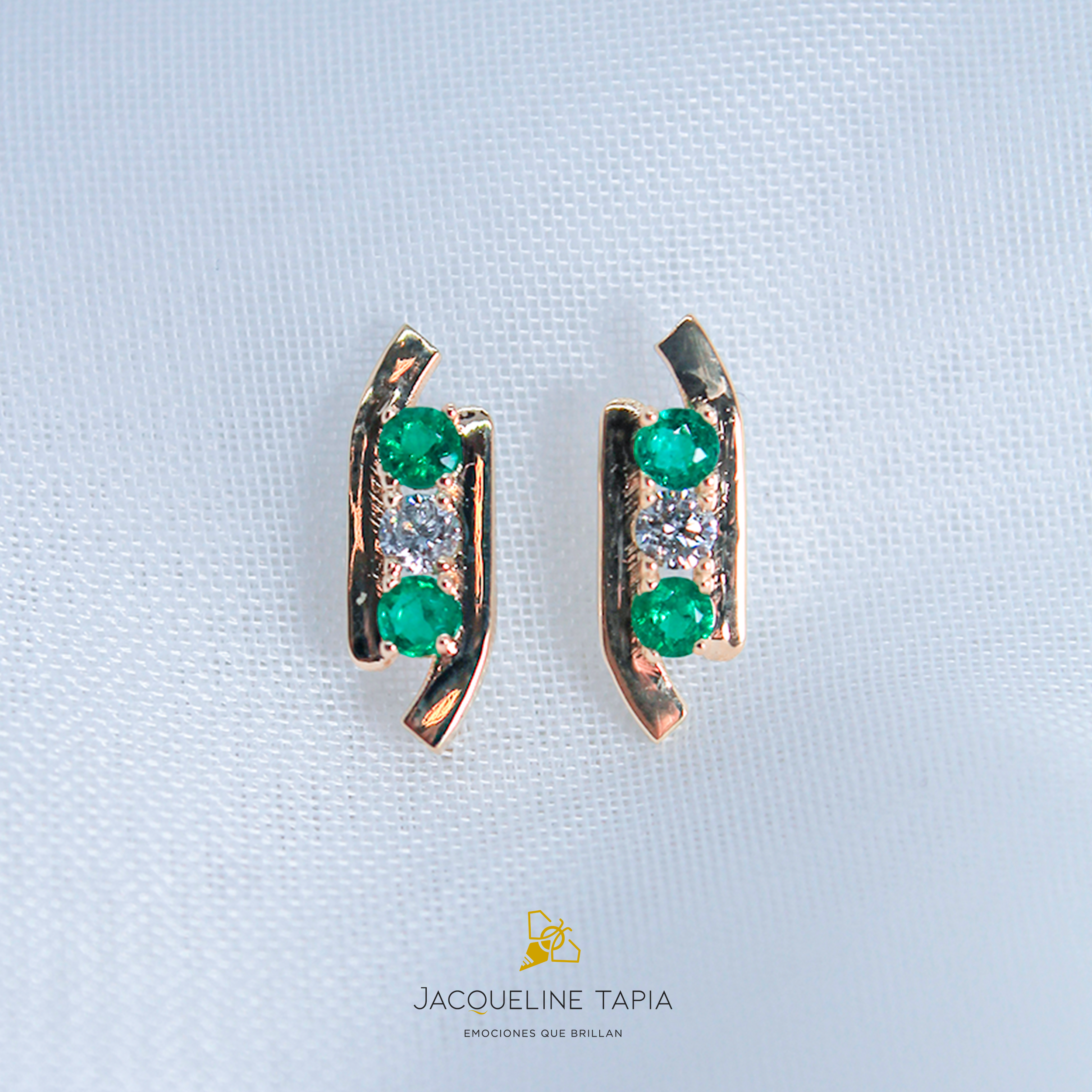 Aretes en Oro Amarillo 14K con Esmeraldas y Diamantes